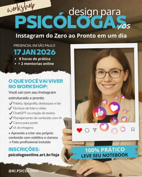 Para Psicólogas/os e profissionais da área da saúde que desejam organizar e estruturar seu Instagram profissional com mais estética, clareza e autonomia — mesmo sem saber nada de design, edição ou IA.